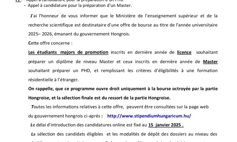 إعلان عن منحة إلى بلاد المجر للطلبة الماستر والدكتوراه المتفوقين
