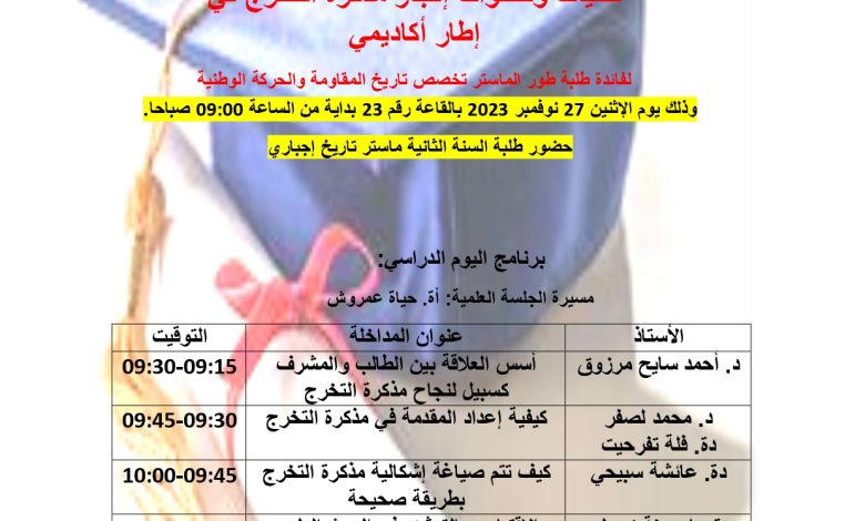 الرئيسية/Slider/يوم دراسي حول تقنيات وخطوات إنجاز مذكرة التخرج في إطار أكاديمي Sliderأساتذةأيام دراسيةإعلاناتطلبة يوم دراسي حول تقنيات وخطوات إنجاز مذكرة التخرج في إطار أكاديمي 23 نوفمبر 2023 439 أقل من دقيقة 23 نوفمبر 2023 439 أقل من دقيقة اظهر المزيد شاركها فيسبوك تويتر لينكدإن مشاركة عبر البريد طباعة