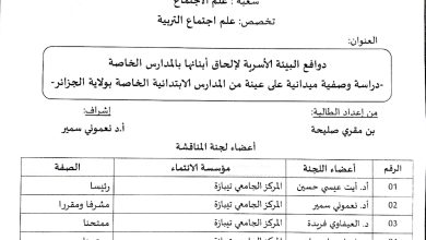 تعلم الأستاذة بوخديمي طلبة السنة الثالثة علم الإجتماع الفوج 02 أنه تم برمجة حصة تعويضية لمقياس علم…