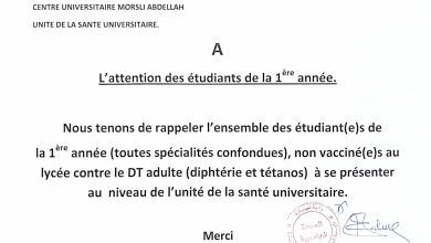 تنبيه لطلبة السنة الأولى جذع مشترك وحدة الصحية الجامعية…