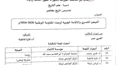 ندوة دكتورالية بعنوان “الحكام الفرنسيون العامون في الجزائر “1830-1962م