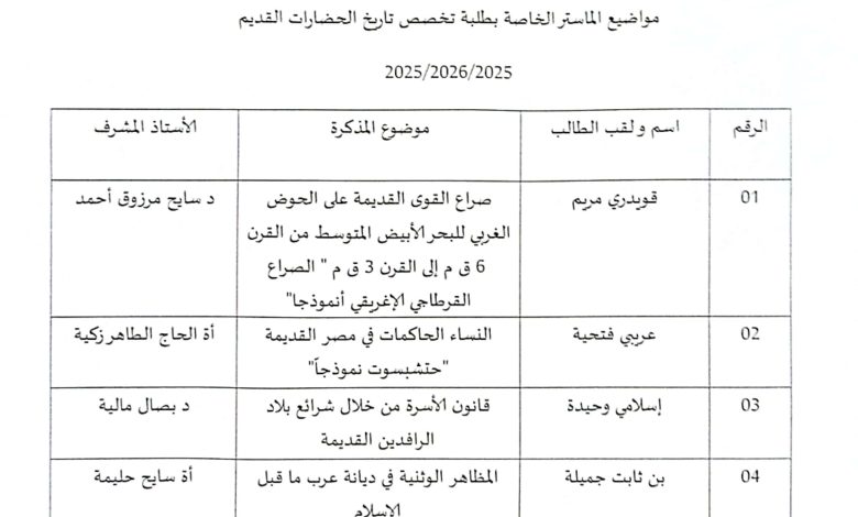 الرئيسية/إعلانات/أساتذة/مواضيع الماستر الخاصة بطلبة تخصص تاريخ الحضارات القديمة لسنة 2025/2026 أساتذةإعلاناتطلبة مواضيع الماستر الخاصة بطلبة تخصص تاريخ الحضارات القديمة لسنة 2025/2026 3 ديسمبر 2024 572 أقل من دقيقة 3 ديسمبر 2024 572 أقل من دقيقة اظهر المزيد شاركها فيسبوك تويتر لينكدإن مشاركة عبر البريد طباعة