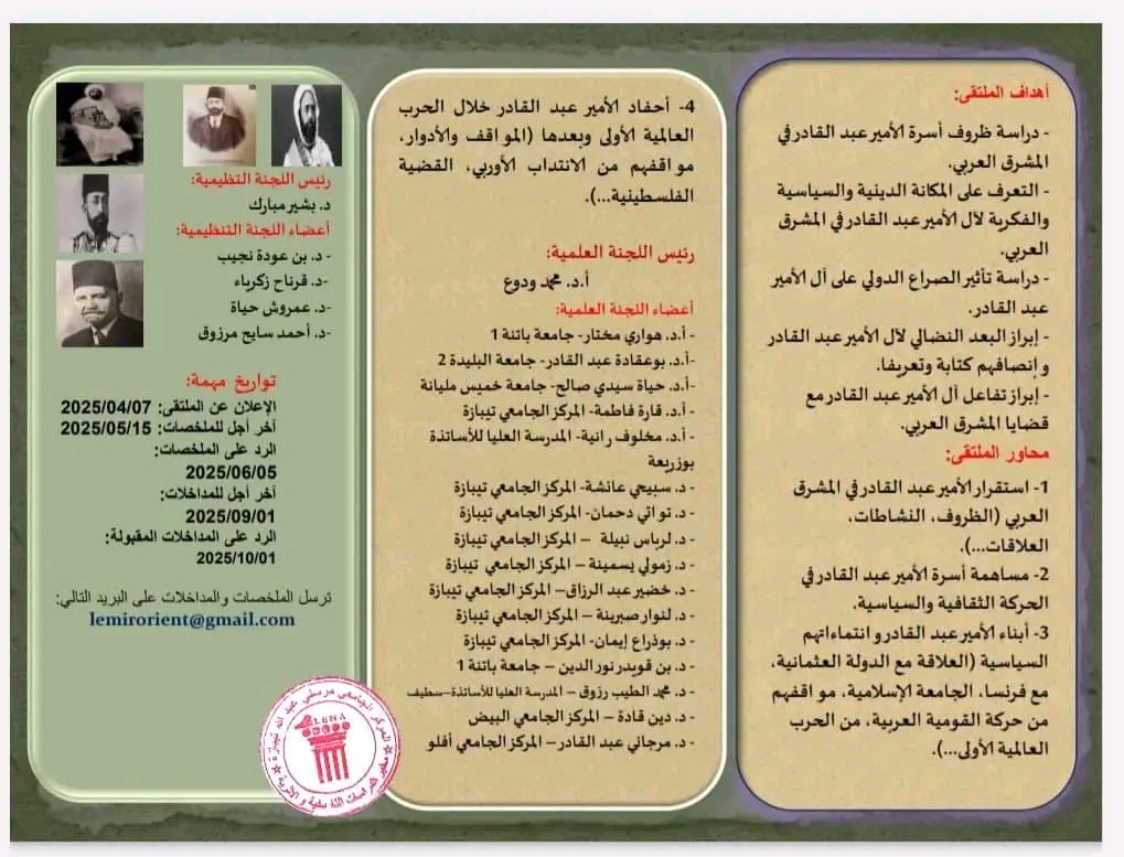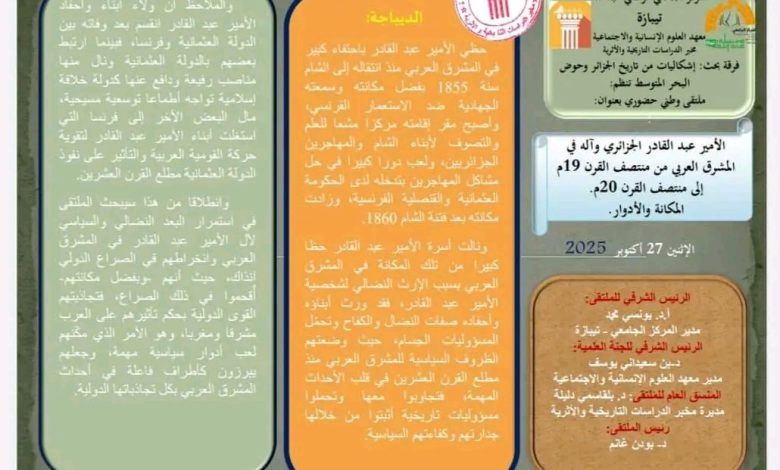 الرئيسية/Slider/الأمير عبد القادر الجزائري وآله في المشرق العربي من منتصف القرن 19 إلى منتصف القرن 20-المكانة والأدوار Sliderأساتذةأيام دراسيةإعلاناتالتظاهرات العلمية للمخبرطلبةمخبر الدراسات التاريخية و الأثرية الأمير عبد القادر الجزائري وآله في المشرق العربي من منتصف القرن 19 إلى منتصف القرن 20-المكانة والأدوار 10 أبريل 2025 540 أقل من دقيقة 10 أبريل 2025 540 أقل من دقيقة اظهر المزيد شاركها فيسبوك تويتر لينكدإن مشاركة عبر البريد طباعة