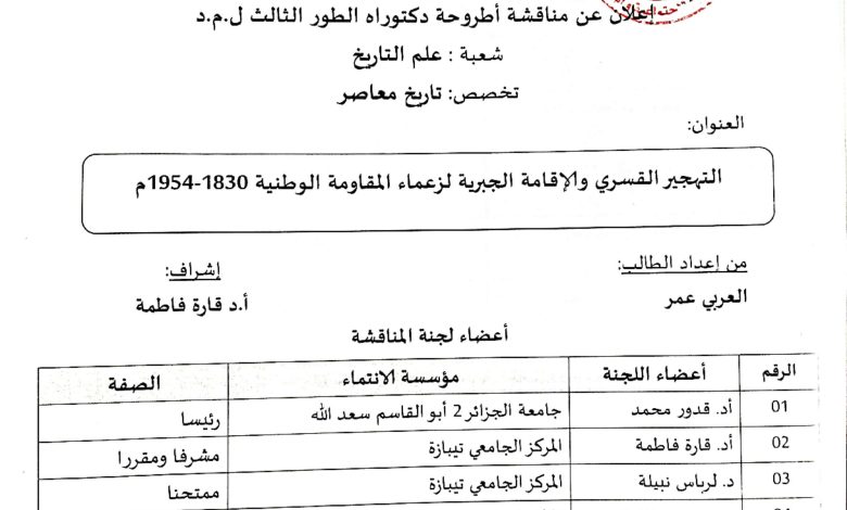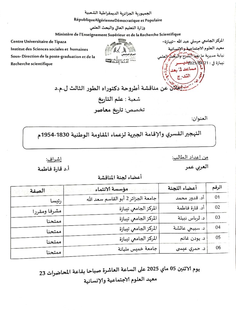 الرئيسية/Slider/مناقشة أول أطروحة في التاريخ المعاصر دفعة 2021/2022 Sliderأساتذةإعلاناتطلبة مناقشة أول أطروحة في التاريخ المعاصر دفعة 2021/2022 22 أبريل 2025 306 أقل من دقيقة 22 أبريل 2025 306 أقل من دقيقة اظهر المزيد شاركها فيسبوك تويتر لينكدإن مشاركة عبر البريد طباعة