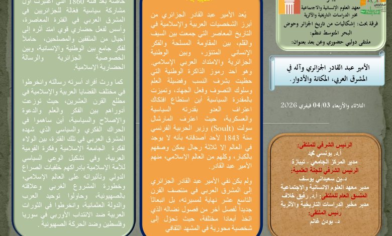الملتقى الدولي الموسوم ب”الأمير عبد القادر وآله في المشرق العربي، المكانة والأدوار”