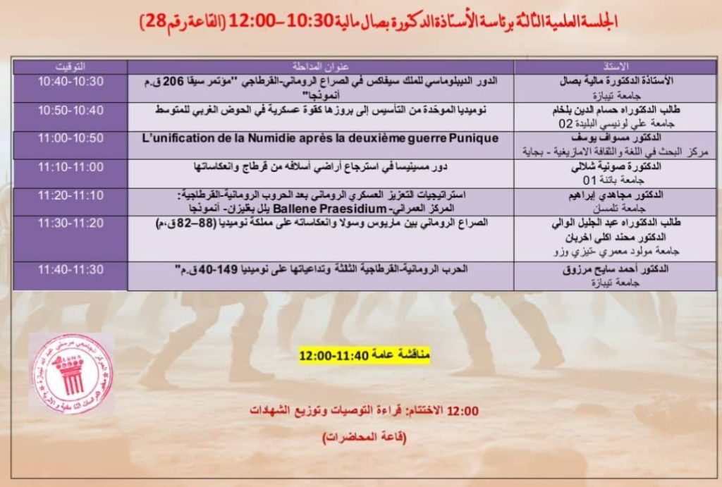 ملتقى وطني حضوري بعنوان الحروب الرومانية القرطاجية وتداعياتها على بلاد المغرب القديم